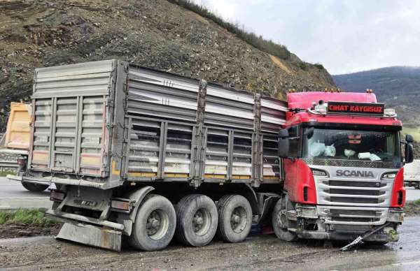 Samsun'un Kavak ilçesinde yağışın etkisiyle kayganlaşan yolda kontrolden çıkan tırın makaslaması sonucu meydana gelen kazada sürücü yaralandı.