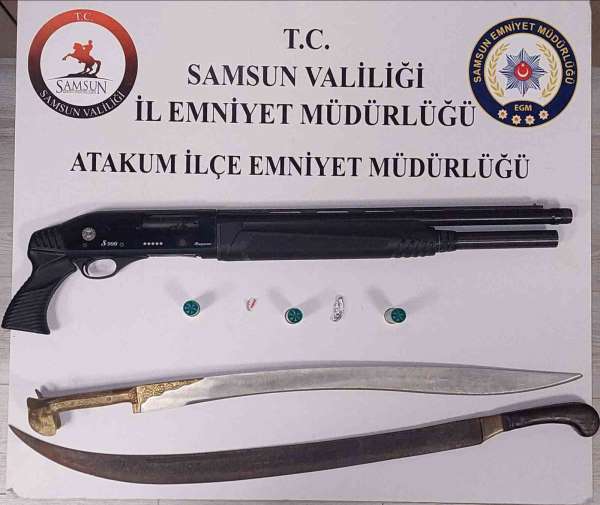 Samsun'un Atakum ilçesinde polis ekiplerince yapılan uygulamada ruhsatsız silah ve kılıç ele geçirilirken, 1 şahıs hakkında adli işlem başlatıldı.