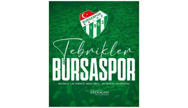 Cumhurbaşkanı Erdoğan yayımladığı mesajda, 'Üst üste elde ettiği şampiyonluklarla TFF 1'inci Lig'e yükselen, futbolumuzun köklü ve güzide kulübü Bursaspor'u, taraftarıyla birlikte tüm Bursaspor camiasını ve Bursalı tüm kardeşlerimi en kalbi duygularımla tebrik ediyor, önümüzdeki sezon 1'inci Lig'de başarılar diliyorum' ifadelerini kullandı.