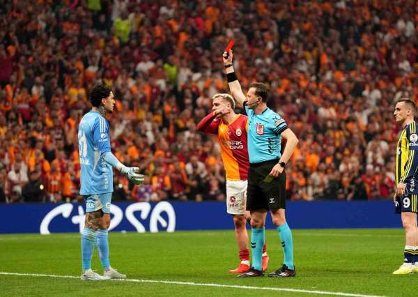 Trendyol Süper Lig'in 31. haftasında Fenerbahçe, deplasmanda Galatasaray ile karşılaşırken derbiyi 10 kişi tamamladı. Hakem Yasin Kol, 60. dakikada sarı-kırmızılılar lehine penaltı noktasını gösterirken kaleci Ederson, itirazları sonucu sarı kart gördü. Mücadelenin 23. dakikasından da sarı kartı bulunan Brezilyalı kaleci kırmızı kartla oyun dışına gönderildi.