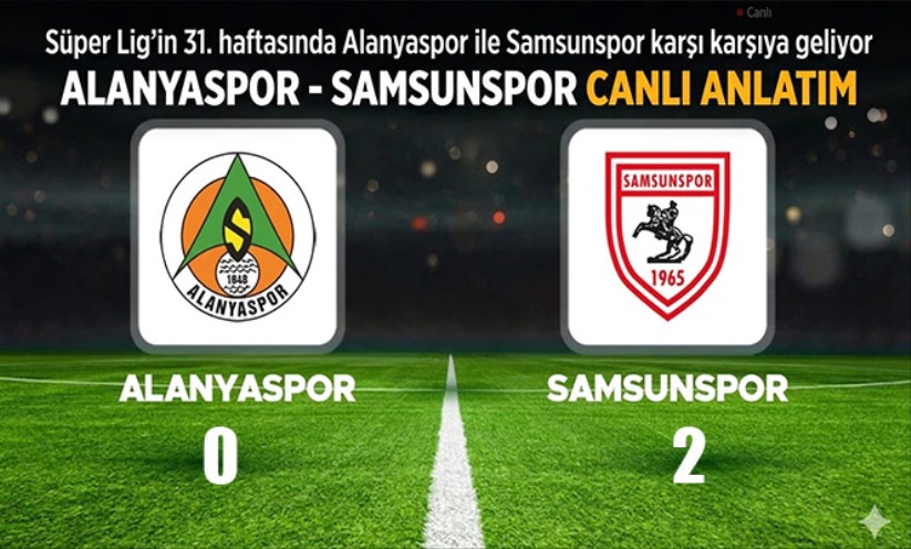 Trendyol Süper Lig'in 31. haftasında Corendon Alanyaspor ile Samsunspor, Alanya Oba Stadyumu'nda karşı karşıya geliyor. Mücadelenin ilk yarısı, konuk ekip Samsunspor'un 2-0'lık üstünlüğüyle tamamlandı.