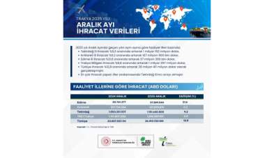 Tekirdağ Aralık ayında 270 milyon 376 bin dolarlık ihracat yaptı
