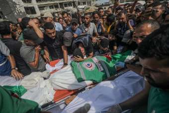 İsrail saldırısında hayatını kaybeden gazeteciler toprağa verildi