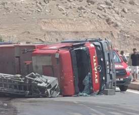 Cizre'de itfaiye aracının devrilip sürüklendiği kaza güvenlik kamerasına yansıdı