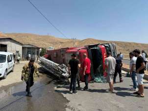 Trafik kazası geçiren itfaiye erleri yaralı halde yangına müdahale etti