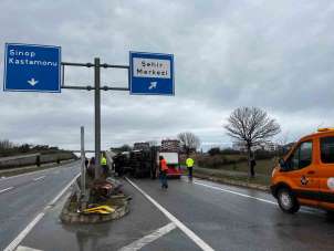 Sinop'ta belediyeye ait kamyonet devrildi: 1 yaralı
