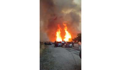Alevler karayolunu böyle sardı, makam araçları az daha yanıyordu