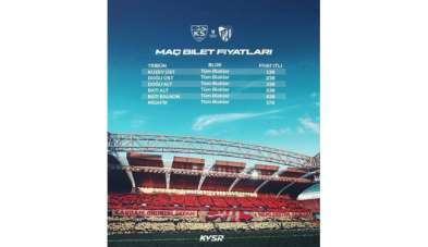 Kayserispor-Kocaelispor maçının bilet fiyatları belli oldu