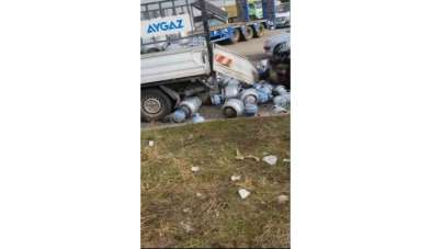 Diyarbakır'da tüplerin yola savrulduğu kaza ucuz atlatıldı