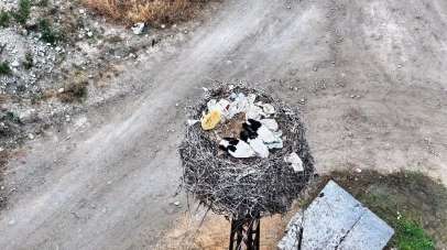 Çevreye atılan çöpler leylekleri tehdit ediyor