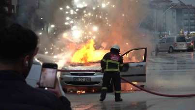 Amasya'da otomobil alev alev yandı, patlamalar korkuttu
