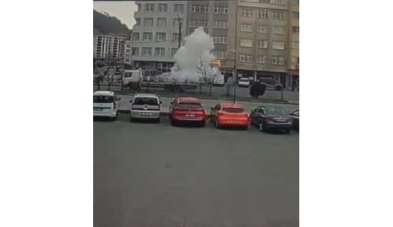 Trabzon'da seyir halindeki tüp kamyonunda korkutan patlama