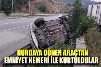Hurdaya Dönen Araçtan Emniyet Kemeri Sayesinde Kurtuldular
