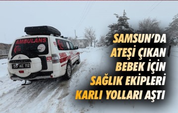 Samsun'da ateşi çıkan bebek için sağlık ekipleri karlı yolları aştı