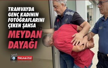 Tramvayda genç kadının fotoğraflarını çeken şahsa meydan dayağı