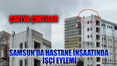 Samsun'da hastane inşaatında işçi eylemi: Çatıya çıktılar