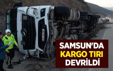 Samsun'da kargo tırı devrildi