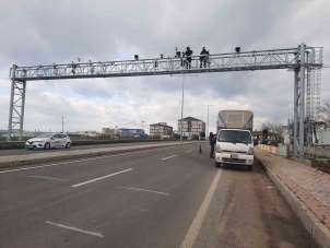 Kazada zarar gören otoyol plaka tanıma sistemi direği yenilendi