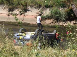 Sulama kanalına uçan otomobilin sürücüsü kazayı yara almadan atlattı