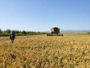 Silifke'de damlama sulama ile üretilen çeltiğin hasadına başlandı