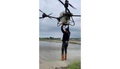 Çeltik tarlasında tehlikeli yolculuk: Drona asılıp uçtu