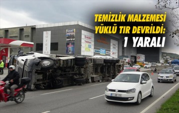 Samsun'da temizlik malzemesi yüklü tır devrildi: 1 yaralı