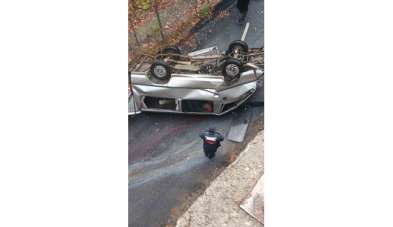 Arnavutköy'de zincirleme trafik kazası: Yan yatan kamyonette sıkışan sürücüyü vatandaşlar kurtardı