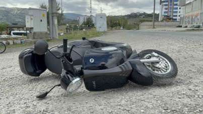 Motosiklet mucurlu yolda devrildi: Kaza anı kamerada